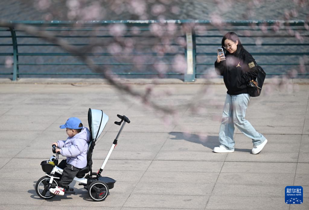 春日时节,人们在天津市西青区中北镇运河文化广场踏青赏花,乐享和煦春光。