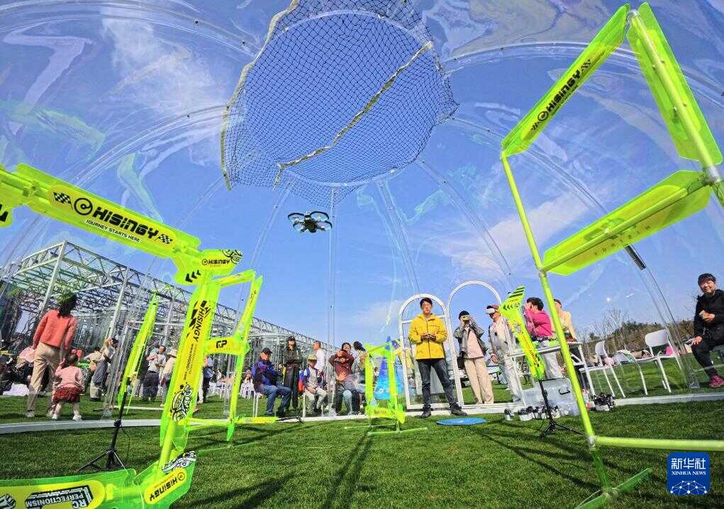 3月28日,在上海世博文化公园双子山脚下的星空草坪上,一场“双子山樱花季无人机嘉年华”活动吸引众多市民游客,现场体验观看穿越机障碍飞行、无人机飞行表演等活动,在明媚春光里感受无人机飞行乐趣。