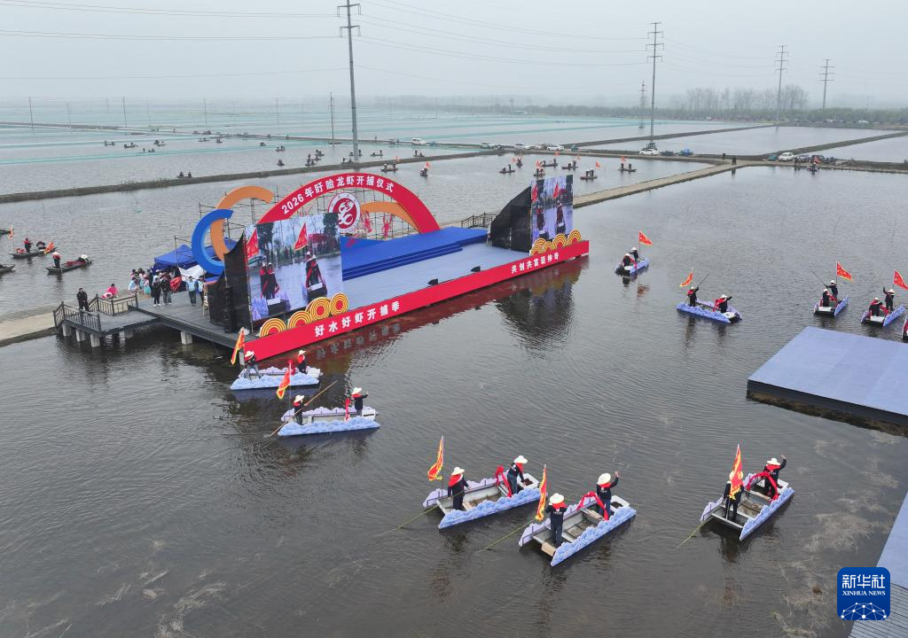 4月3日拍摄的2026年盱眙龙虾开捕仪式现场(无人机照片)。
