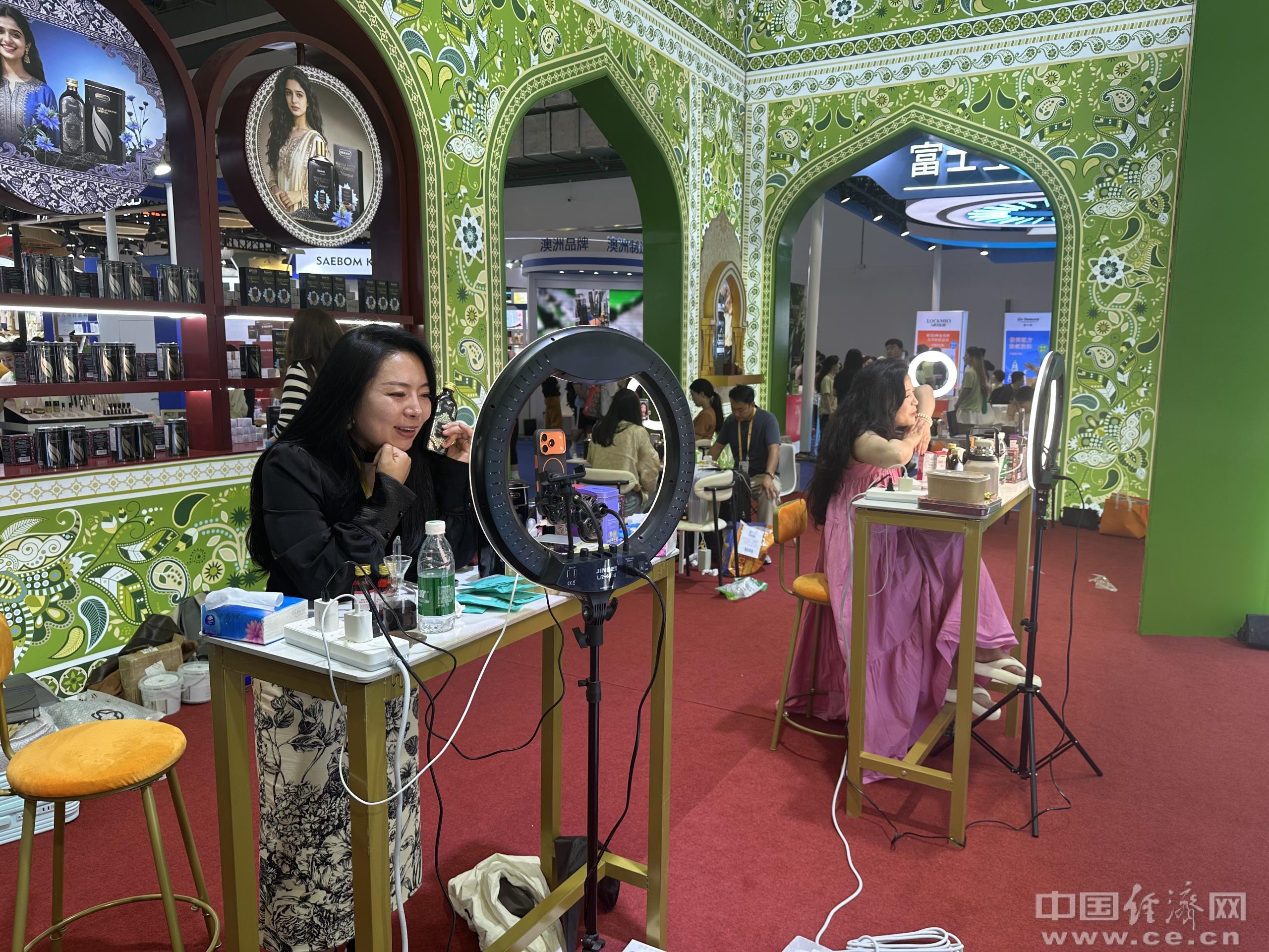 主播在巴基斯坦展区展台直播。中国经济网记者 朱晓航/摄
