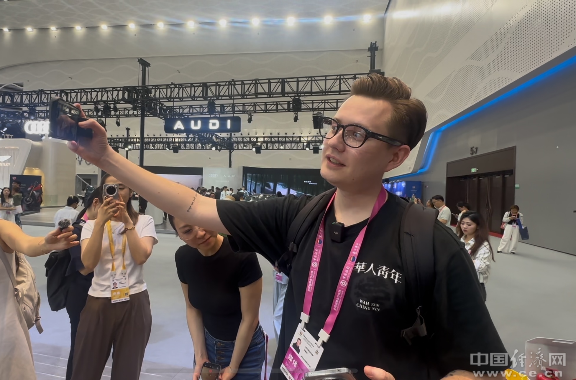 俄罗斯籍网红在现场试戴华为AI眼镜。中国经济网记者 朱晓航/摄