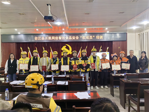 贵州台江县将树立和践行正确政绩观学习教育与网络餐饮舌尖安全工作深度融合,创新监管模式,有效破解网络餐饮后厨隐蔽、监管盲区多、隐患发现难等问题。同时,为首批聘任的12名政治素质过硬、业务能力较强的骑手颁发台江县网络餐饮食品安全“吹哨员”聘书。