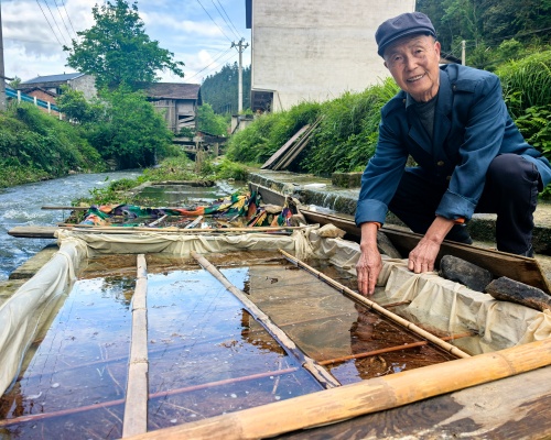 老手艺人林再文至今记得,小时候跟着父亲在溪边打理产卵池、看护鱼花的情景。那时没有现代技术设备,全靠老一辈积累的经验,观天时、辨水情,精准把握鲤鱼交配与鱼卵孵化时机。养好一池水、育壮一塘鲤,这些代代相传的门道,早已深植于心。“祖祖辈辈靠这方水土、靠这些老鲤鱼繁育鱼花过日子,这是咱们村的根。”说起这份传承,老人眼神笃定而自豪。