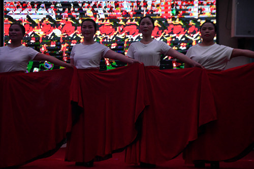 2026年1月25日,一文艺队在贵州省凯里地区百岁健康俱乐部年会上表演节目。(杨仁海 摄)