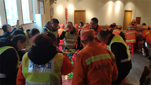 55岁的高伏建是湖北人,他说,这些菜很好吃,另一湖北监利人陈红娥当环卫工5年了,她说,这几年,几乎年年都在张老板家吃团圆饭,菜好,味道也好。(记者 陈斌)