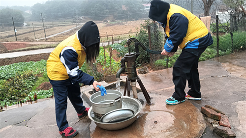 9点30分,义工们来到两位老人家中,为老人送上慰问物资,并与老人亲切交谈,细心倾听老人的心声,关心老人的生活与身体状况。随后,所有人分工合作,配合默契地融入到小年团年饭的筹备中,学生义工们承担起选菜、洗菜、切菜的工作,义工负责人黄新芝掌勺,大家在厨房的烟火气中忙碌有序;李爷爷和陈奶奶则忙着为大家泡上热茶,并亲手点燃灶膛的柴火,用温暖的炉火为义工们驱散冬日的寒意。灶台前的烟火升腾,炉火旁的笑语不断。同学们在择菜时分享校园里的趣事,爷爷奶奶在添柴时讲述过往的生活点滴,这顿丰盛的小年午饭,不是义工们单方面的“付出”,而是两代人携手营造的团圆滋味。这种双向的协作,让小年的仪式感愈发浓厚,也让彼此的距离在烟火气中悄然拉近。