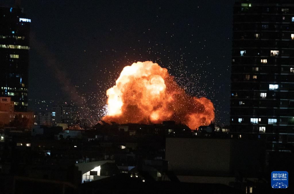 2月28日晚,以色列特拉维夫市区传出巨大爆炸声,有建筑物冒出火光。