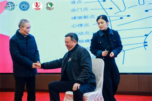演讲中,他引经据典,逻辑严密,案例详实,讲解深入浅出,现场示范“一指功”的中医特色技艺,在危重急症处理问题上,解决患者“颈椎病、肩周炎”的困扰。不仅展现了中医急救理论的博大精深,更揭示了其在现代应急医疗体系中的独特价值与应用路径。搏得现场嘉宾热烈掌声。