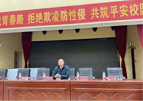 随后,法治副校长宁国忠同志为在场师生带来了一堂生动而深刻的法治教育课。宁所长凭借多年丰富的基层警务工作经验,紧密围绕学生欺凌、防性侵、防盗窃三大核心议题,通过大量真实、鲜活的典型案例,以案释法,深入浅出地剖析了相关行为的危害、特征、法律后果及防范对策。他的讲解语言平实、说理透彻,不仅普及了法律知识,更着重传授了面对侵害时的具体应对策略与求助途径,极具针对性和实用性,引发了同学们的深入思考与强烈共鸣。