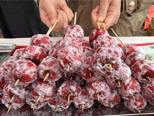 3月2日,一摊位制作出售冰糖葫芦。(杨仁海 摄)
