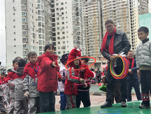 3月2日,学生们在套圈。(杨仁海 摄)
