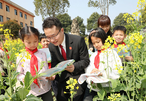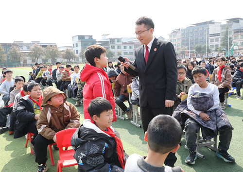 3月13日,湖南省保靖县人民法院的志愿者在清水坪学校给学生讲普法小故事。连日来,该法院组织志愿者深入中小学校,开展法治安全进校园活动,通过普法宣传、普法儿歌等形式,帮助同学们养成学法、知法、守法、用法、护法的良好习惯,增强法律意识,提高自我保护和防范意识。(俞采华 唐智利)