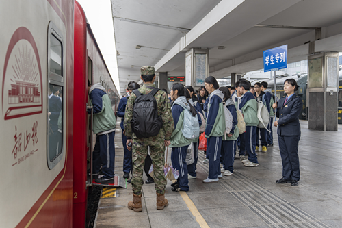 为确保研学专列安全顺畅开行,岳阳站对客调命令管理、售票组织、列车编组核对等工作流程进行细化,将车站第二候车室设为研学专列专用候车区域。同时,在师生进站、候车、乘车全流程安排专人引导其经专用通道进入站台,明确各岗位人员职责,严格落实客流疏导、安全提示等服务保障措施。