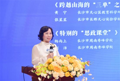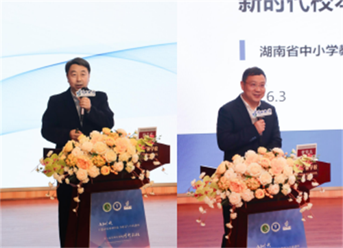 长沙市天心区教育局党委书记、局长骆理围绕“三问导 学、四课递进、三级联动 ”核心模式,系统分享了天心区以主题式校本研修助力教育高质量发展的实践经验,展现了区 域层面研修提质的“天心样本 ”;仰天湖实验学校党委书记、校长唐玲娟则聚焦学习共同体建设,介绍了学校“五阶循环 ”校本研修模式的实践探索,用鲜活案例呈现了校本研修在学校层面的落地成效与创新路径。