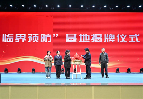 华容县人民检察院、县教育体育局、县职业中专、湖南省启林社会工作发展中心相关负责人共同为“临界预防”基地揭牌