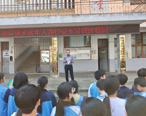 法治暖阳映照青春脸庞,春风化雨间,一场关于“守护”的接力在校园里温暖上演。2026年4月9日上午,启蒙镇平安法治办、派出所、司法所、法庭、妇联等多部门打破壁垒、协同联动,共同走进启蒙民族中学校园,开展未成年人保护专题宣讲活动,以法治之名为青春护航,为全校师生筑起了一道坚实的法治“防火墙”。