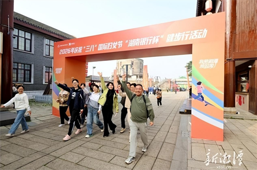 “我爱湘潭我的家”2026年庆祝“三八”国际妇女节“湖南银行杯”健步行活动在窑湾历史文化街区盛大启幕。(方阳 摄)