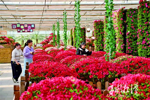 盘龙大观园杜鹃热烈绽放,引来八方游客观赏打卡。