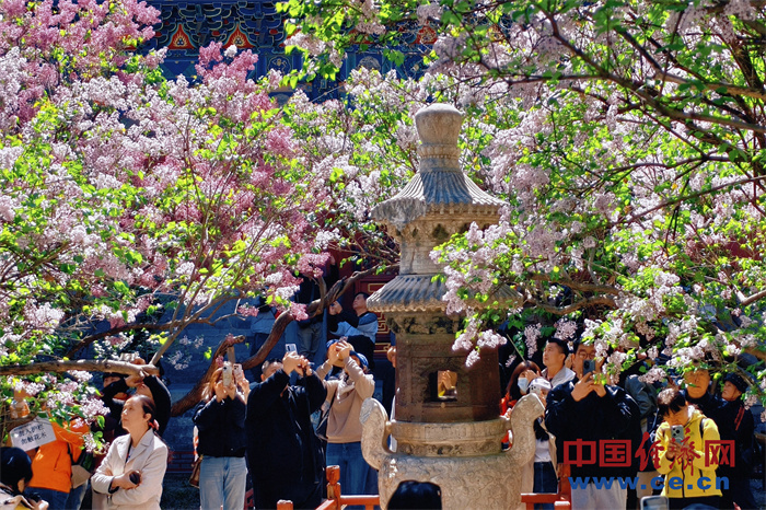 中国经济网4月8日讯 近日,北京法源寺丁香进入盛花期,白紫繁花缀满枝头,清香弥漫寺院,迎来大批市民游客踏青赏花。