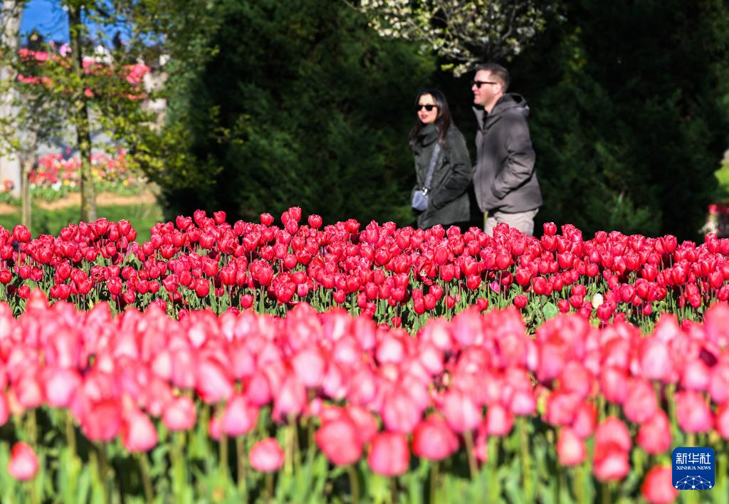 近日,土耳其最大城市伊斯坦布尔迎来一年一度的郁金香节。五颜六色的郁金香在伊斯坦布尔多个公园绽放,吸引众多游客前来观赏。(新华社记者 刘磊 摄)