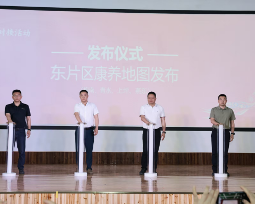 在康养地图展板前,与会嘉宾纷纷驻足细看、探讨交流。“这个点位标注的是上坪的高山避暑康养基地吗?”“青水畲族的民俗康养体验点具体有哪些项目?”面对嘉宾的询问,项目讲解员一一详细作答:“上坪乡海拔千米以上,夏季平均气温24℃,已建成森林步道和康养民宿群;青水畲族乡依托‘三月三’民俗节庆,目前已推出畲医药浴、乌米饭食疗等特色康养体验。”