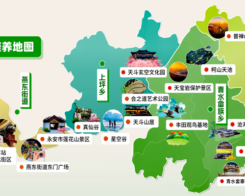 从生态旅居到民族医药,从森林疗愈到田园养生,这张康养地图串联起永安东片区四个乡镇最具代表性的康养资源,实现了跨区域“一图统览、一键导览”。槐南的古堡文化、青水的民族风情、上坪的高山森林、燕东的城区服务,各具特色,各有所长。倘若各自为战,难成规模,唯有联片发展,方能共赢。