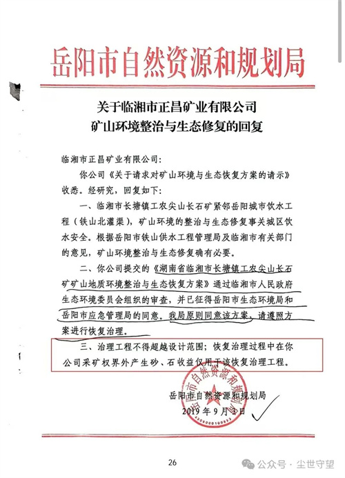 这四份官方函件,也反映出不同部门、不同阶段对项目的理解与界定:有的函件聚焦生态修复本身,明确施工边界与治理内容;有的函件则提示资源利用、矿产品处置、采矿许可等法定要求,强调生态治理与矿产开采分属不同管理范畴,必须依法区分。