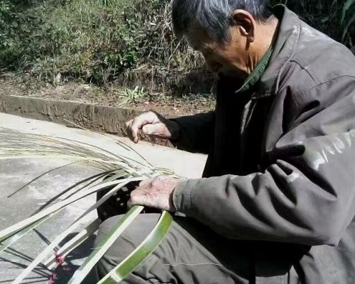 一位老人坐在洞口的石阶上编竹筐。看见我,笑了笑,像招呼老邻居:“来了?坐。”