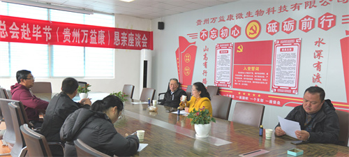 “神奇土著益生菌,人类健康守护神。”贵州万益康公司负责人还详细汇报了与有关院校科研机构合作推动情况、省市科技部门课题申报和实施情况、省市科协老科协助企创新推动情况、博士创新站工作情况、省级科技特派员专家团队帮助支持情况、农业农村部门调研指导情况等以及下步工作思路。