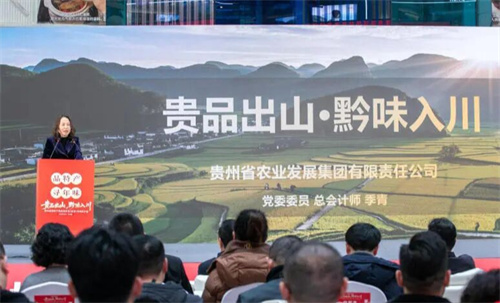 贵州省农发集团党委委员、总会计师季青在会上作了“贵品出山·黔味入川”主题推介。