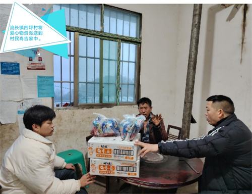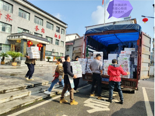 爱心物资到位后,流长镇各村工作人员迅速行动,有条不紊地开展物资清点、搬运、发放工作,把温暖及时送到群众手中。