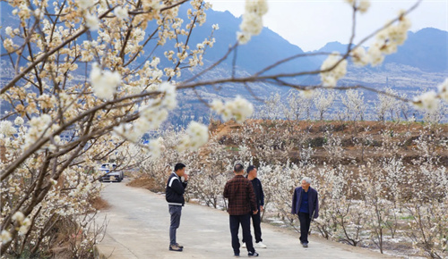 春回大地,万物复苏。连日来,随着气温逐渐回暖,贵州省毕节市七星关区杨家湾镇七星村、发达村数千亩樱桃花迎春绽放,给人以春天的气息。