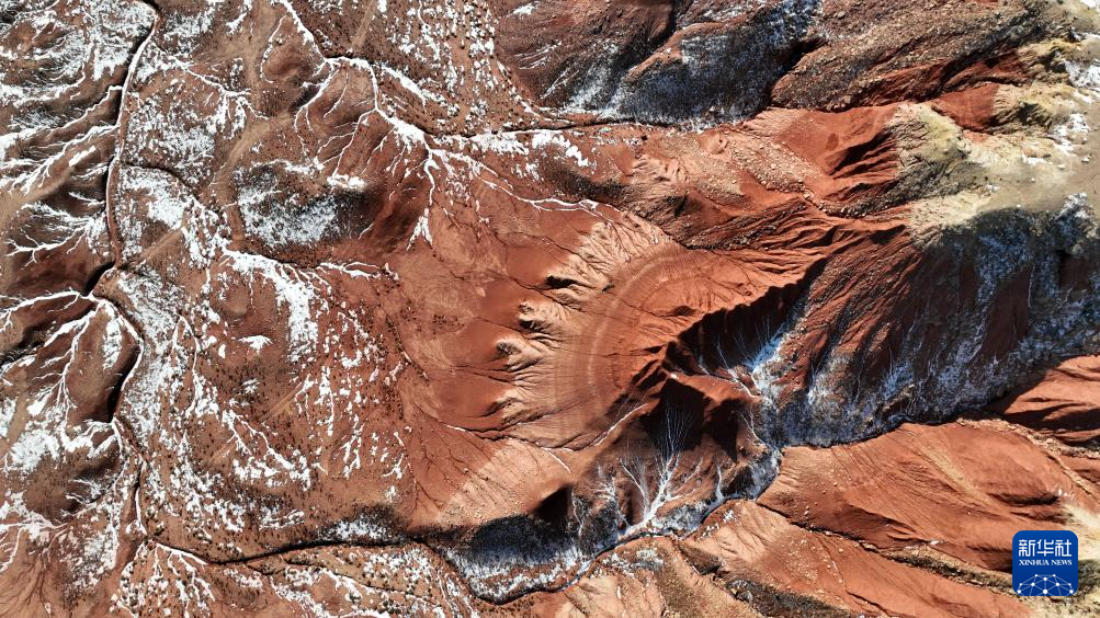 红崖台地位于内蒙古乌兰察布市四子王旗北部,是内蒙古四子王国家地质公园的重要组成部分。这里山丘耸立、沟壑纵横,山体呈现赤红色。隆冬时节,稀薄残雪点缀其间,在苍茫天地中勾勒出一幅静谧而壮丽的自然画卷。