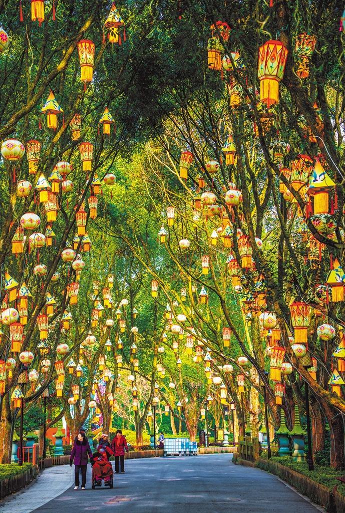 2月3日拍摄的浙江省绍兴市新昌县大佛寺风景区新春祈福游园灯会,色彩缤纷的花灯让景区洋溢着浓浓年味。潘伟峰摄(中经视觉)