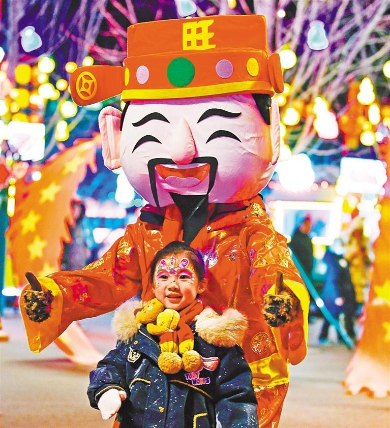 1月31日,北京市延庆区世园国际旅游度假区第四届花灯艺术节,小朋友开心合影。孙立君摄(中经视觉)
