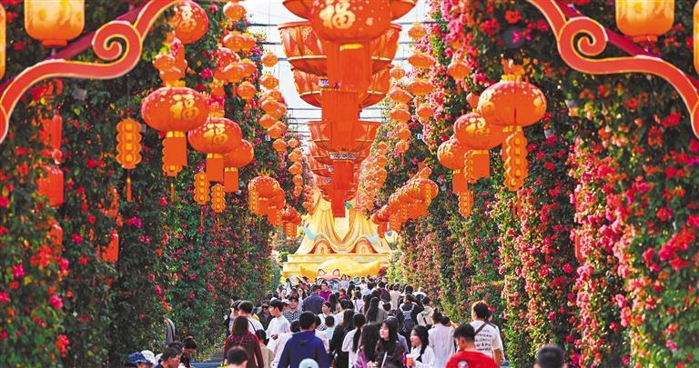 2月6日,广西南宁市2026年青秀山新春灯会,百米灯廊吸引众多游客观赏。胡 雁摄(中经视觉)