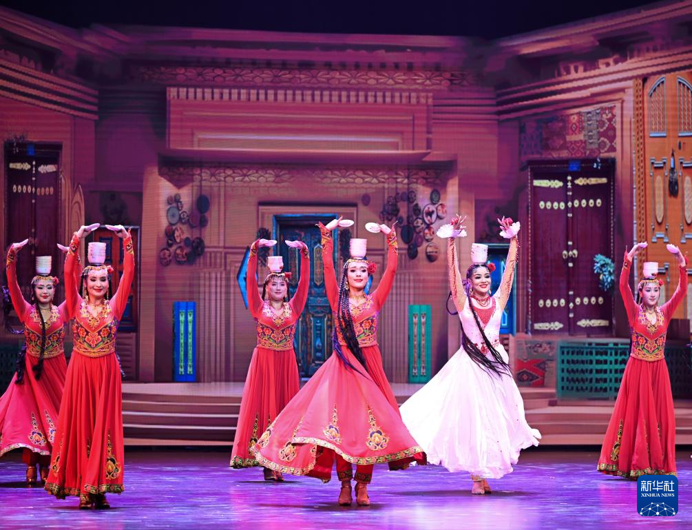 2月28日,演员在大型乐舞诗《杏花之约·丝路龟兹》中表演。