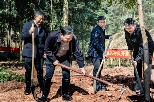 3月12日,在第48个植树节到来之际,刘正仁、阳建、闫新列、凌晓明、熊江新等县委、县人大、县政府、县政协、县人武部五大家在职在家领导来到安定镇河坪村闽楠主题公园,与干部职工、志愿者共同开展2026年义务植树活动。