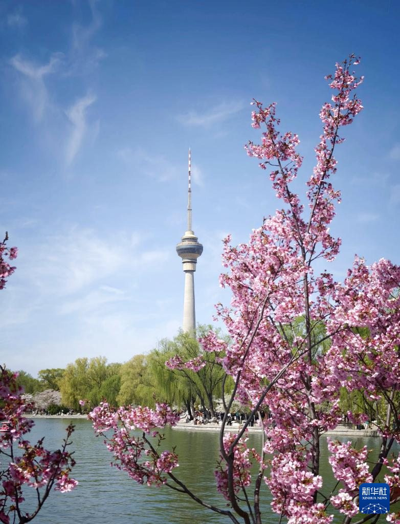 4月1日拍摄的北京玉渊潭公园盛开的樱花。
