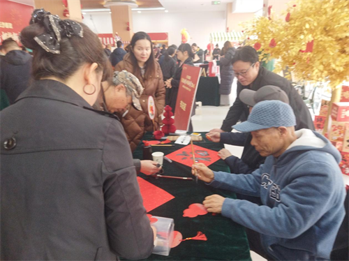 展厅内还设置有精品图书、非遗女书、非遗湘绣、文创产品、贵金属专区。为让市民感受新春的喜气,邮政公司还请来了湖南省书协的两名老师俊哥、文哥给马年生肖市民写“福”字。