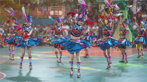 在台江县台盘村的篮球场上,哨声响起,来自不同地区的球员们在赛场上并肩冲锋,赛场边,身着民族盛装的乡亲们用锅碗瓢盆助威,中场休息时,反排木鼓舞、苗族飞歌等非遗表演轮番登场,浓郁的民族风情扑面而来。这里不仅是篮球竞技的赛场,更是民族文化展示的大舞台。