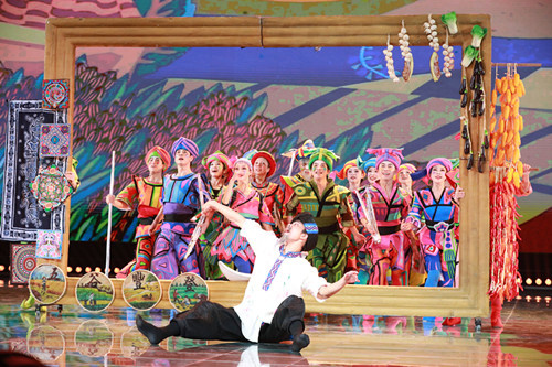 夜幕降临,台盘村的录制现场早已热闹非凡。红灯笼挂满村寨小径,非遗集市长桌宴身着盛装的各族群众,苗族姑娘的银饰在灯光下熠熠生辉,随着舞步叮咚作响;节目《村歌——让世界听见》《相聚,村BA》《村乐——村声不息》《村超进行曲》《如愿》等声婉转悠扬,与《咕噜山歌》《江声入旧年》《白龙马》《马上想见你》等节目的高亢嘹亮交织在一起,奏响了新春的序曲。彩排现场,演员们精神饱满、热情高涨,一个个充满民族特色的节目轮番登场,既有展现苗族传统民俗的芦笙舞《滚山珠》,鼓点刚劲有力的村戏《屯堡观新》、舞姿豪迈奔放的村舞《出嫁》,尽显贵州文化的魅力;也有融合现代元素的《画里乡田》《锦绣贵州》《吉祥鸟儿飞起来》《赶集克》等节目,《2026贵州“村晚”》由序章、村光无限、村和景明、村意盎然、终章五个篇章组成,参演节目共计24个,整台晚会在互动内容和互动环节上进行深入设计,以剧情式串接各篇章节目,将新时代贵州乡村的美好生活娓娓道来,传递出各族群众脱贫致富后的幸福喜悦。