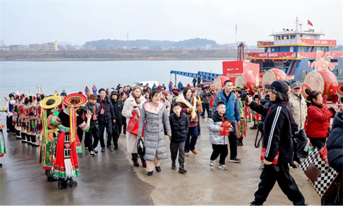 新春民俗喜乐会打破了单一场地的局限,创新性采用“一江两岸,双核联动”的举办模式,让两地的年味相互呼应、彼此交融。市民游客乘坐接驳车、“天马渡江”轮渡,便可轻松往返于兴马洲与东窑港之间,“一站式”体验两种不同韵味的年味。