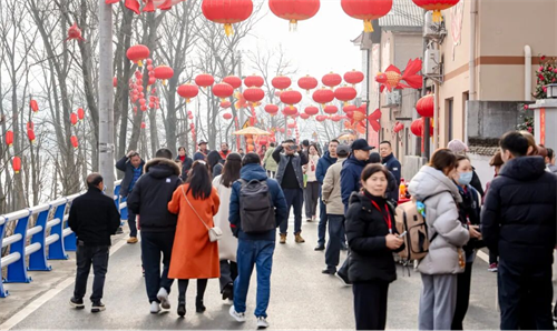 除此之外,演艺区定时上演财神巡游、民俗乐队演奏、瑶族舞蹈等精彩节目,台下掌声、欢呼声不断,节日的喜庆氛围被彻底拉满。