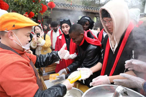 中午时分,中外友人共聚“夫子宴”,品尝地道的中国年味美食。席间,“新年快乐”“马年吉祥”的祝福声此起彼伏,不同语言在这里交织,却传递着同样的美好祝愿。这场别开生面的民俗体验活动,让雁城乡村飘出了国际年味。通过亲手参与、亲身体验,留学生们不仅深入了解了中国传统文化,更在互动交流中增进了友谊。衡阳以这样温暖而生动的方式,向世界展示了中国传统文化的魅力与当代中国开放包容的城市形象,让文化交融的美好画卷在雁峰乡村徐徐展开。(记者 张鹏 )