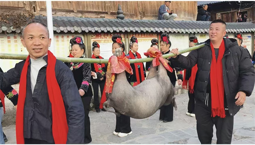 活动结束时,迪气苗寨还分别给参加活动的各个芦笙队奖励一头大猪以及新年大红包。