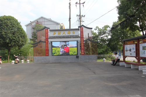 休闲娱乐。自从有了文化广场后,远近人们都喜欢来到这里进行休闲娱乐。每天早晨,有的人,练起了太极拳;有的人,舞起了“八段锦”;有的人,在转圈晨跑;有的候车者,乘空观看“文化长廊”中的墙报。白天,象棋爱好者,围在石桌上,在“楚河汉界”对阵酣战;广场舞队,赶来排练节目;有的人,在拍打羽毛球;“双休日里”,爷爷或奶奶,带领孙儿孙女溜达,观看墙报、朗诵“沙村八景”“杜溪六景”诗词、在场中赏花拍照……