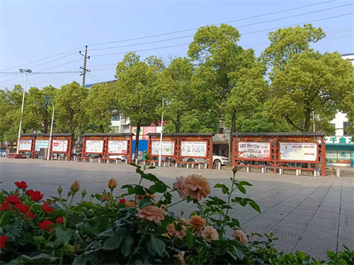 公共交通候车亭:在广场左侧人车繁忙路口建设一个含交通路线图、遮阳避雨棚、休息长椅的候车亭,极大方便群众乘车出行,切实解决百姓急难愁盼。