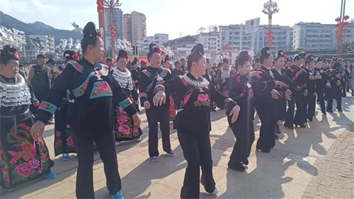 活动现场,大家身着绚丽民族盛装,芦笙齐鸣、舞步轻盈。悠扬的芦笙声响彻城镇,大家手拉手、心连心,在欢快互动中增进情谊、拉近邻里距离,处处彰显团结和睦的良好风尚。
