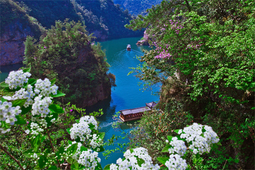 “您听,那边有山歌!”船头有人轻呼。循声望去,一只小木船正从对面缓缓靠近,船头站着一位身着土家族服饰的姑娘,未持麦克风,未用音响,清亮的嗓音便径直穿过湖面:“马桑树儿搭灯台哟,郎去当兵姐在屋……”歌声未落,满船游客便自发鼓起掌来。